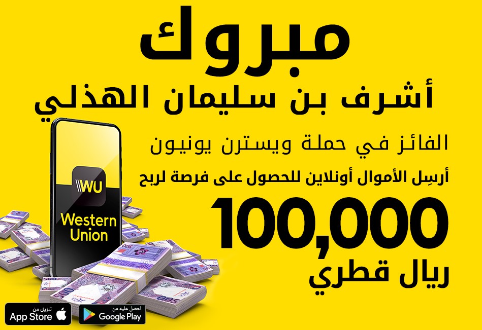 إختتام العرض الترويجي للويسترن يونيون الرقمي ”أرسل الأموال عبر الإنترنت واحصل على فرصة لربح 100,000 ريال قطري“ في 16 أكتوبر 2021